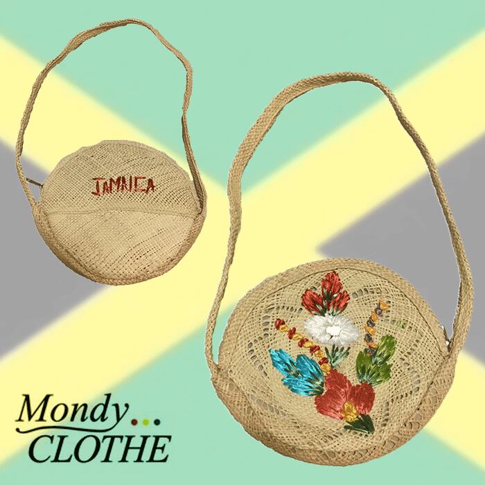 編み込みバッグで、ジャマイカらしいデザインが刺繍されています♪